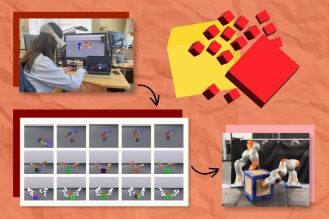 The process operates in three steps. First, it utilizes a VR headset to track human hand movements as they manipulate objects. Next, these interactions are mapped onto a 3D physics simulator, illustrating key points of motion. Finally, PhysicsGen employs trajectory optimization, simulating the most effective motions for completing specific tasks.